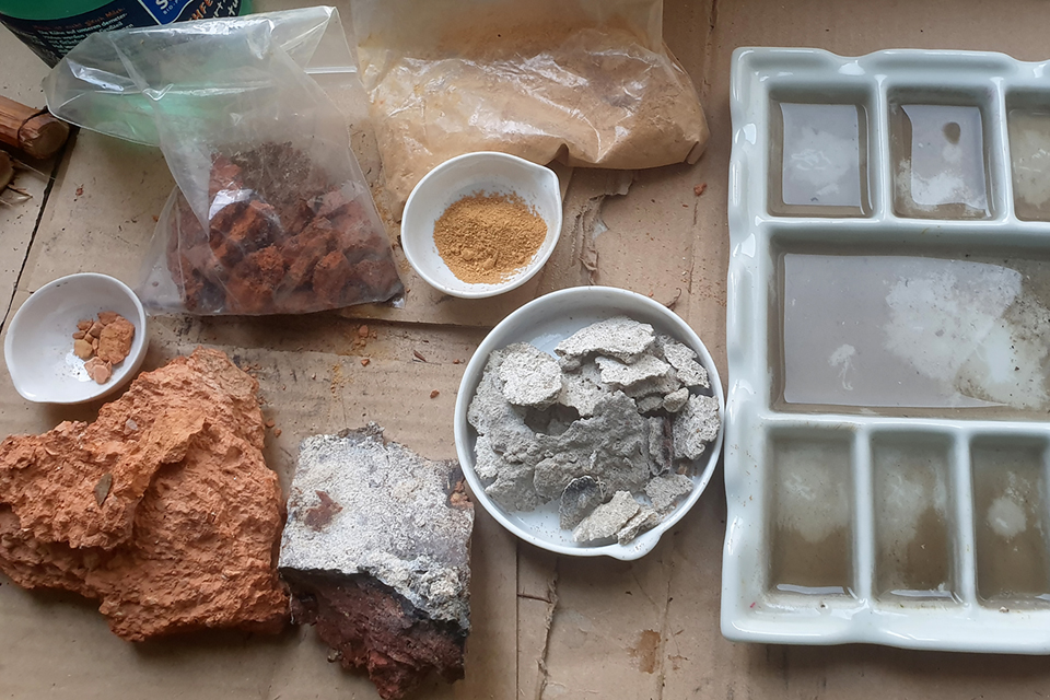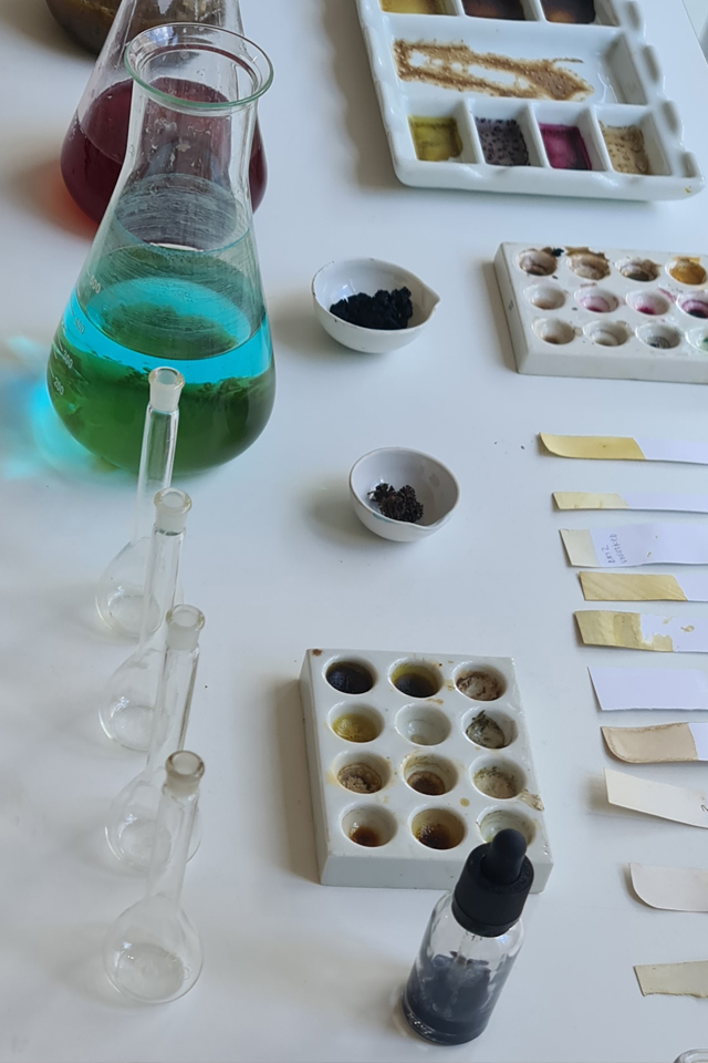 Colour Topograhies - site-specific colours combine colour and location, as a type of topographical perception through local colour. What colour producing plants and minerals can be found in this place, and how can it be perceived through colour? This project has resulted in site-specific colour charts that record, map, and characterise a place..