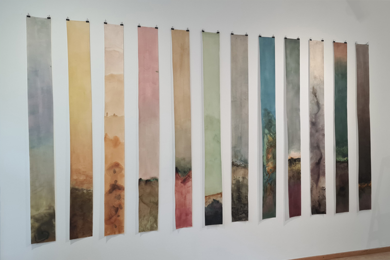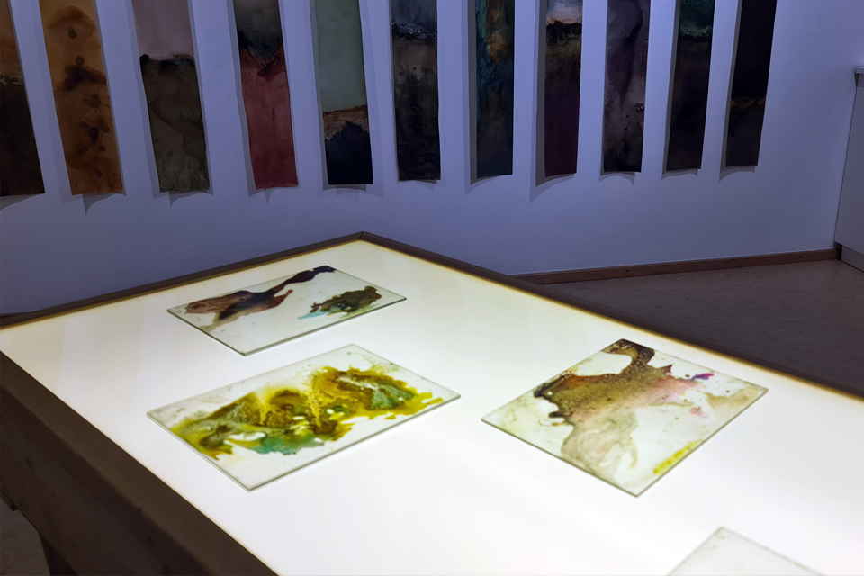Colour Topograhies - site-spezifische Farben verbindet Farbe und Ort, ist eine Art der topografischen Wahrnehmung durch lokale Farbe. Welche farbgebenden Pflanzen und Mineralien finden sich an diesem Ort, wie lässt er sich durch Farbe begreifen? Daraus entstehen site-spezifische Farbcharts.